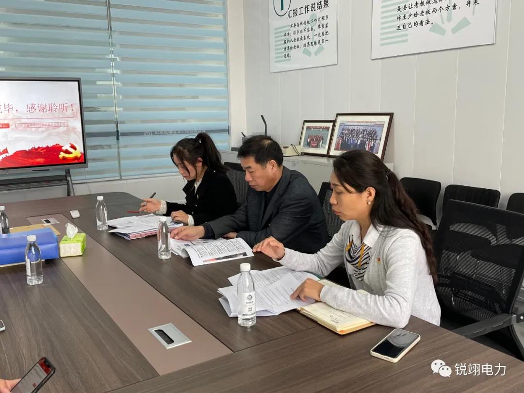 调研现场听取了锐翊电力党支部的工作汇报,大家就支部党建工作和企业发展情况进行了详细的座谈,同时查看了支部“三会一课”开展记录、党员会议记录等情况。