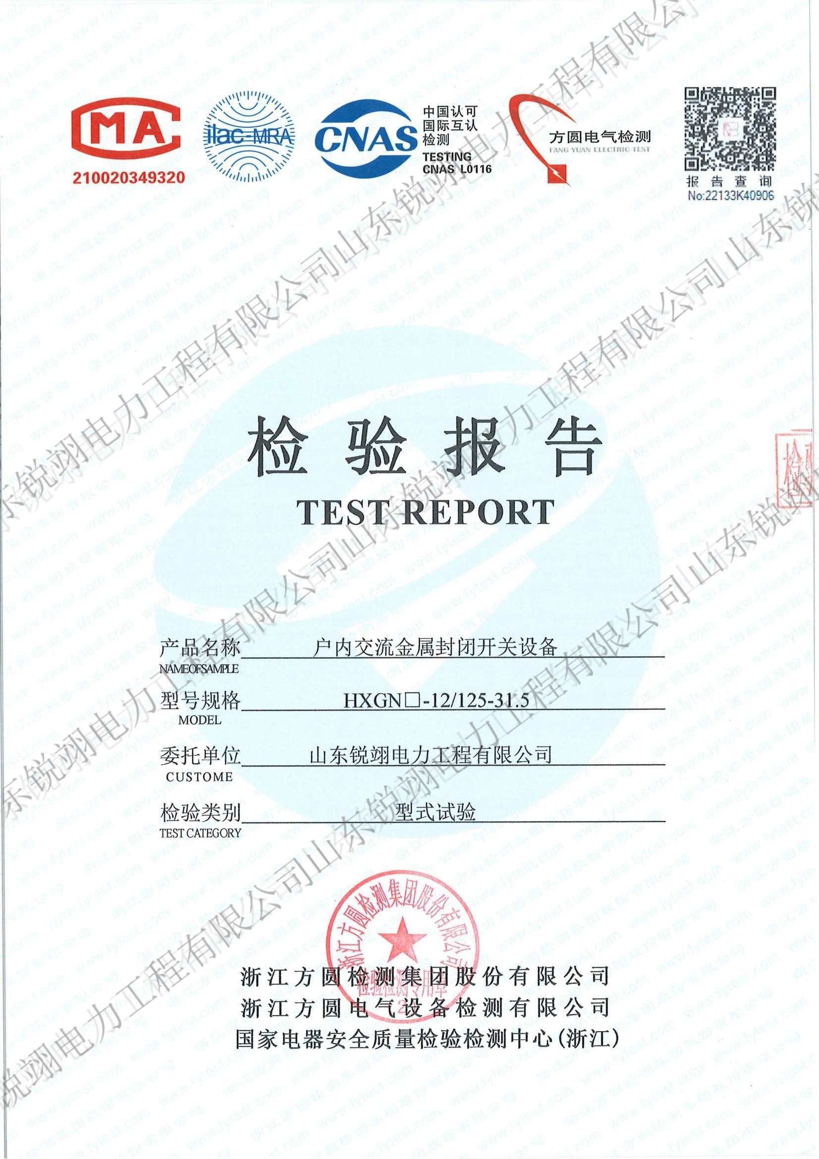 户内交流金属封闭开关设备 / HXGN-12/125-31.5